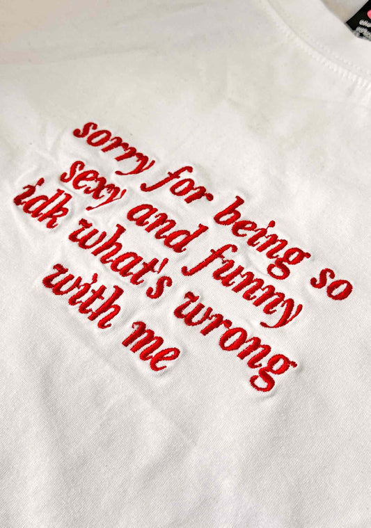 Embroidered Sorry For Being So Funny Y2K Baby Tee Cherrykitten