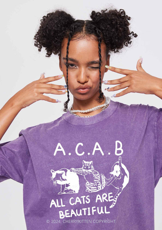ACAB Cats Y2K Washed Tee Cherrykitten