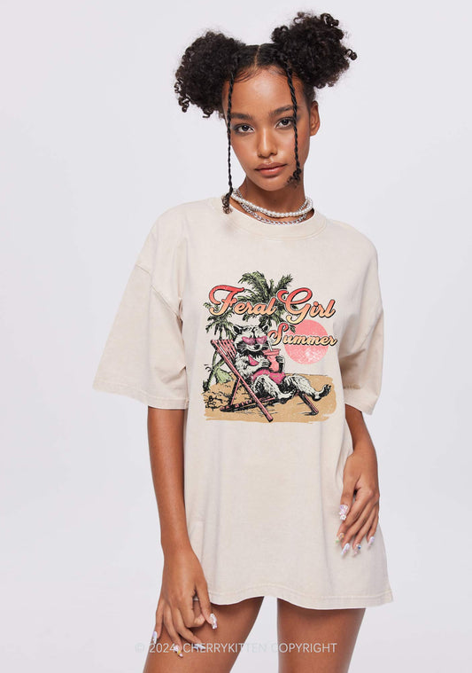 Feral Girl Summer Raccoon Y2K Washed Tee CherrykittenRegular price $29.90 USDRegular priceUnit price per$31.90 USDSale price $29.90 USDSale