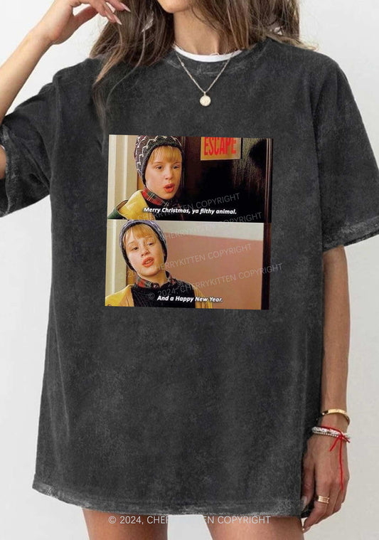 Merry Christmas Ya Y2K Washed Tee Cherrykitten