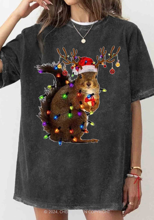 Christmas Squirrel Lights Y2K Washed Tee Cherrykitten