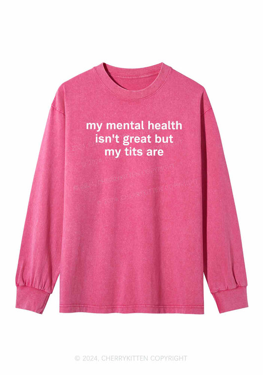 My Mental Health Isn't Great Y2K Washed Long Sleeves Cherrykitten