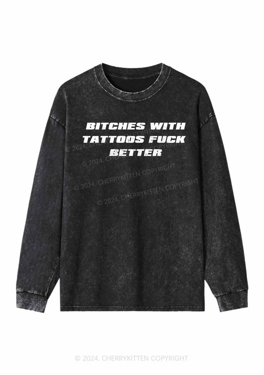 Bxxches With Tattoos Fxxk Better Y2K Washed Long Sleeves Cherrykitten