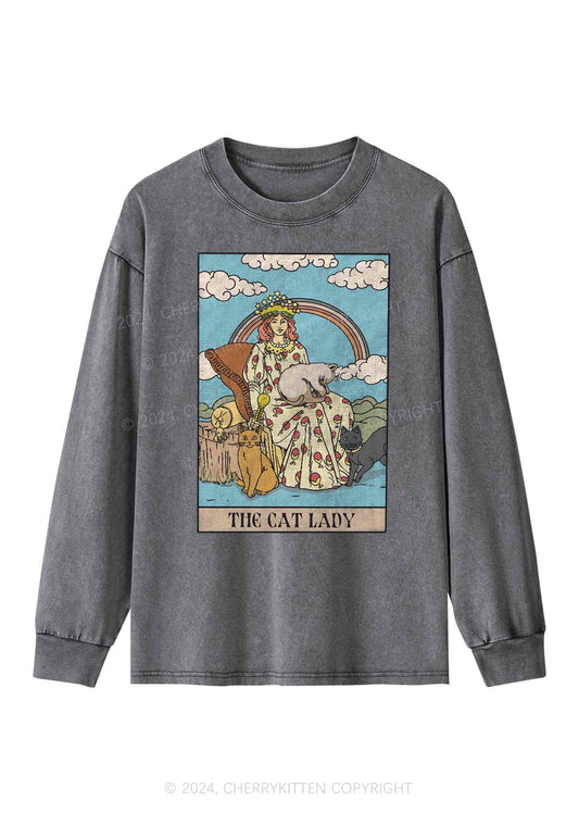 The Cat Lady Y2K Washed Long Sleeves Cherrykitten