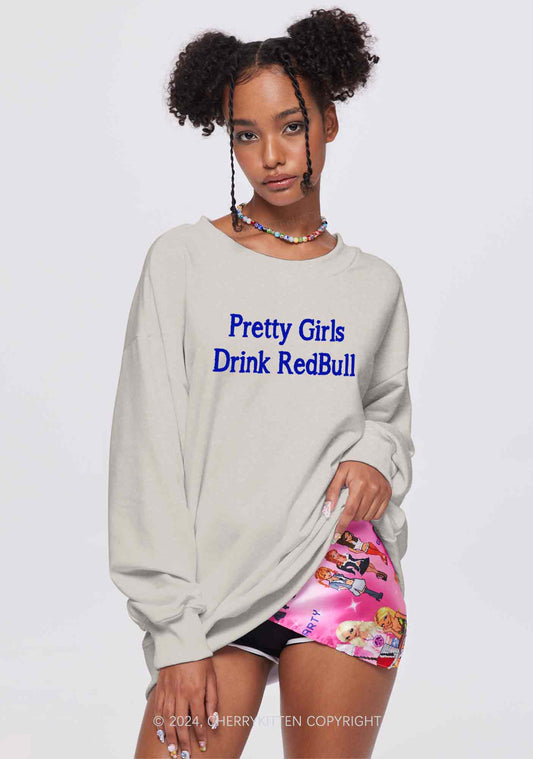 Pretty Girls Drink Red Y2K Washed Sweatshirts Cherrykitten