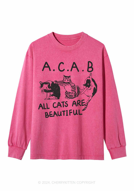 ACAB Cats Y2K Washed Long Sleeves Cherrykitten