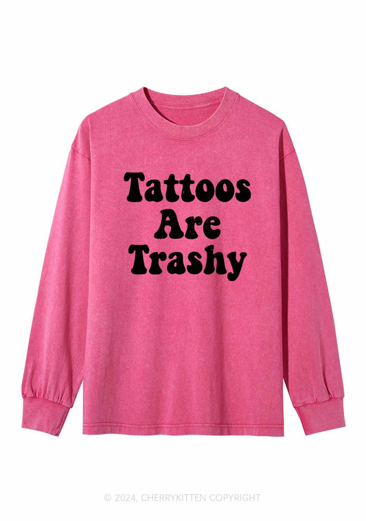 Tattoos Are Trashy Y2K Washed Long Sleeves Cherrykitten