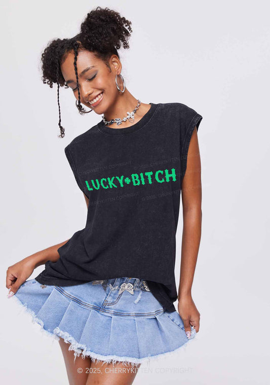 Lucky Bxxch St Patricks Y2K Washed Tank Cherrykitten