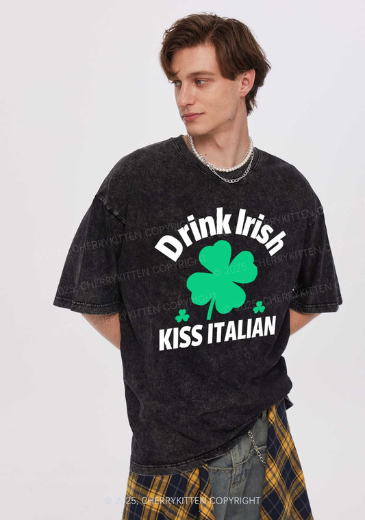 Drink Irish Kiss Italian St Patricks Y2K Washed Tee Cherrykitten