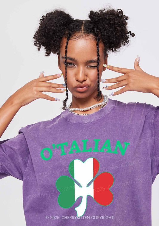 OTalian Shamrock St Patricks Y2K Washed Tee Cherrykitten