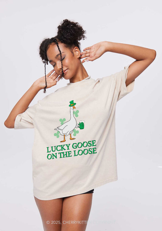 Lucky Goose On The Loose St Patricks Y2K Washed Tee Cherrykitten