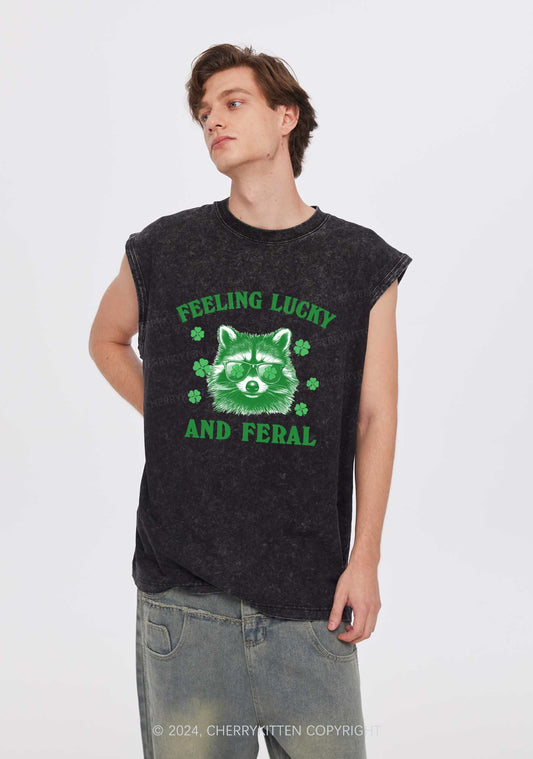 Feeling Lucky And Feral St Patricks Y2K Washed Tank Cherrykitten