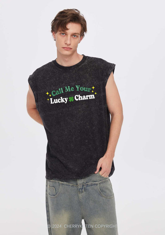 Call Me Your Lucky Charm St Patricks Y2K Washed Tank Cherrykitten