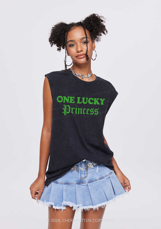 One Lucky Princess St Patricks Y2K Washed Tank Cherrykitten
