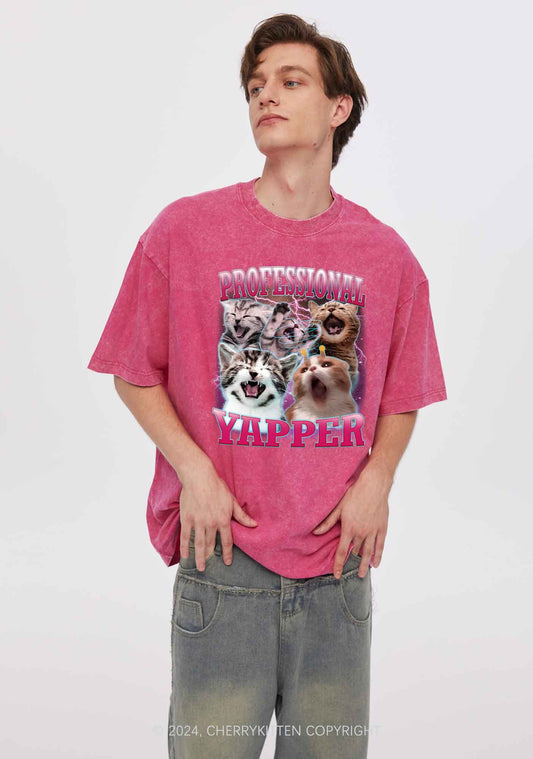 Professional Yapper Cat Y2K Washed Tee Cherrykitten