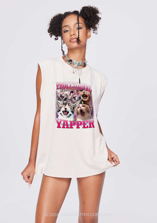 Professional Yapper Cat Y2K Washed Tank Cherrykitten