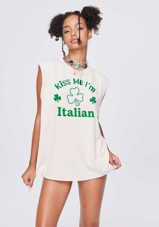 Kiss Me Im Italian St Patricks Y2K Washed Tank Cherrykitten