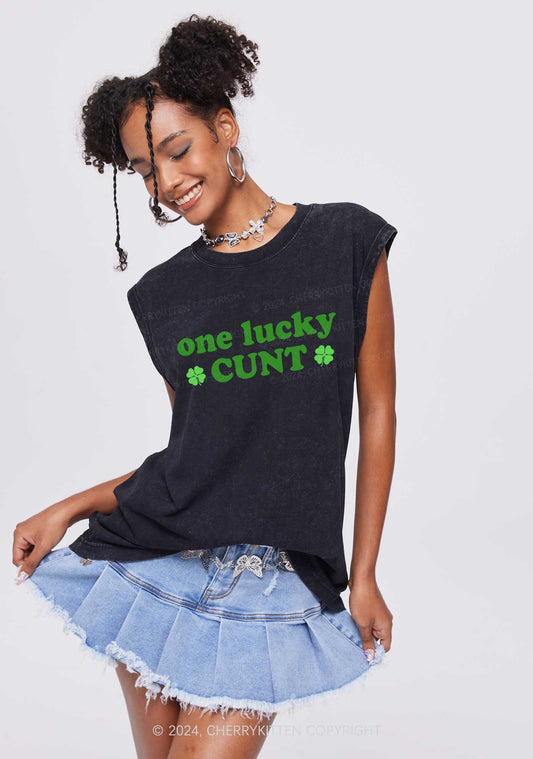 One Lucky Cxxt St Patricks Y2K Washed Tank Cherrykitten