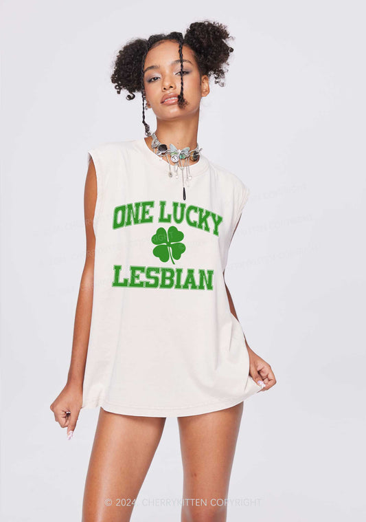 One Lucky Lesbian St Patricks Y2K Washed Tank Cherrykitten