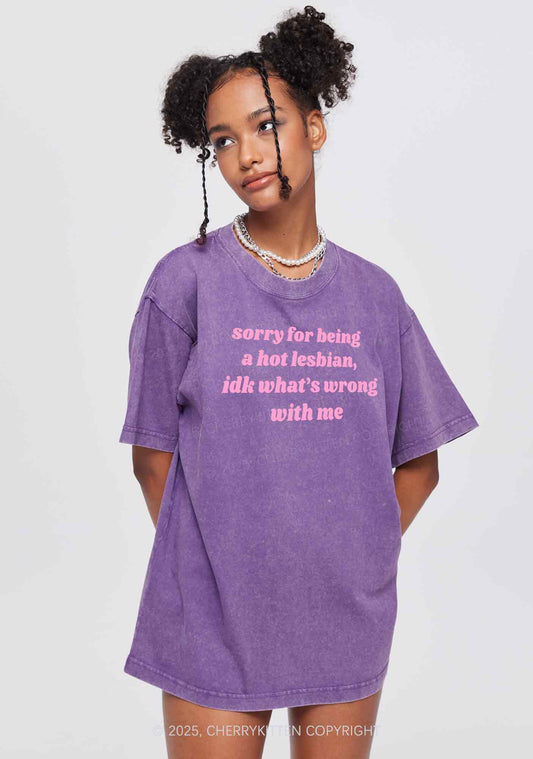 Sorry For Being Hot Lesbian Y2K Washed Tee Cherrykitten