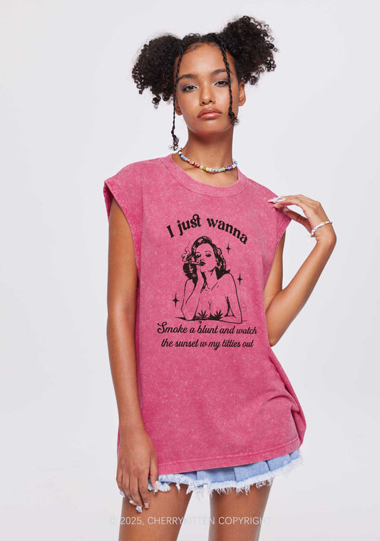 Just Wanna Smoke A Blunt Y2K Washed Tank Cherrykitten
