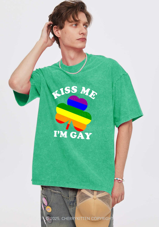 Kiss Me Im Gay St Patricks Y2K Washed Tee Cherrykitten