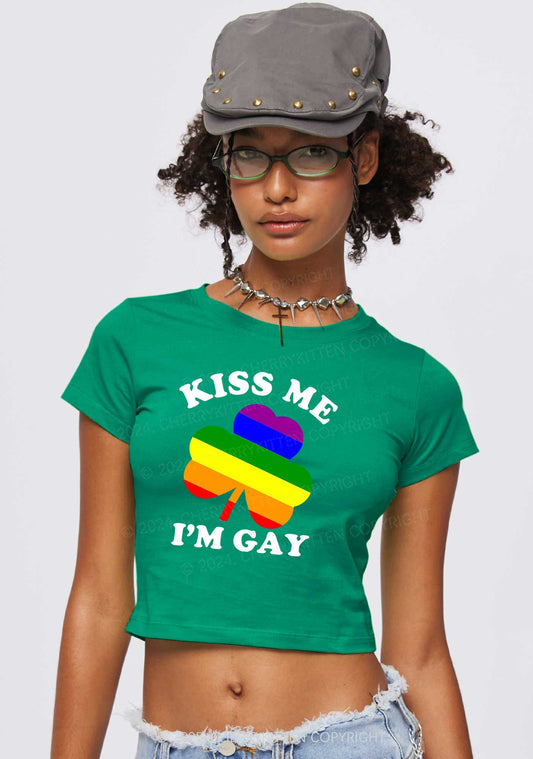 Kiss Me Im Gay St Patricks Y2K Baby Tee Cherrykitten