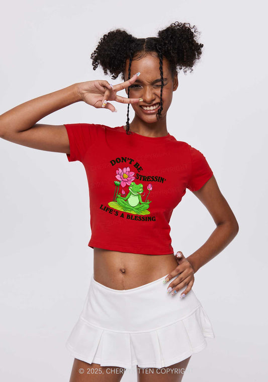 Dont Be Stressin Frog Y2K Baby Tee Cherrykitten