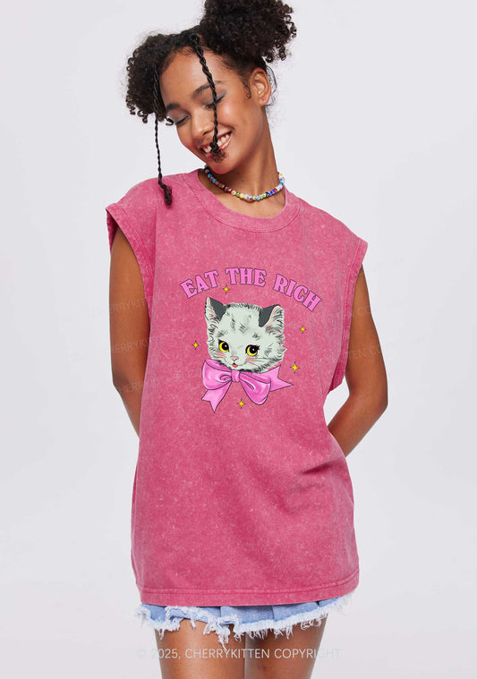 Eat Rich Cat Y2K Washed Tank Cherrykitten