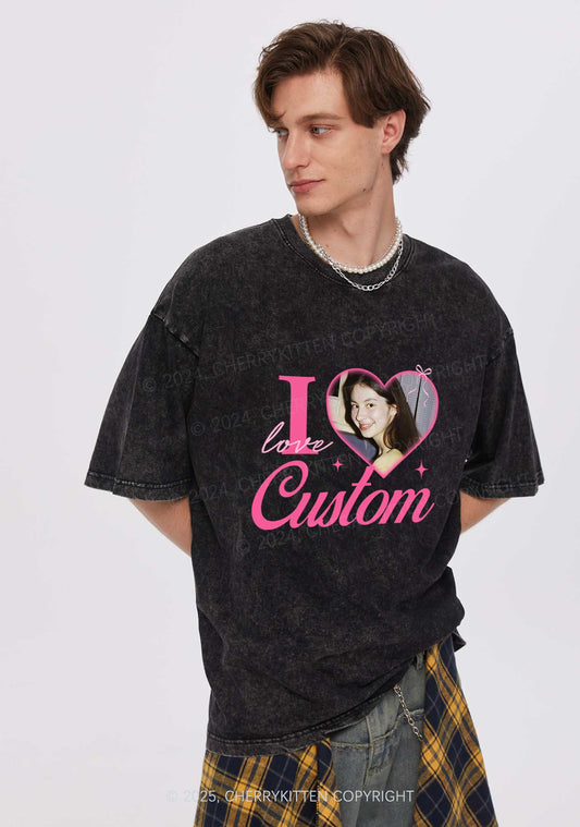 I Love Custom Photo Y2K Valentine's Day Washed Tee Cherrykitten