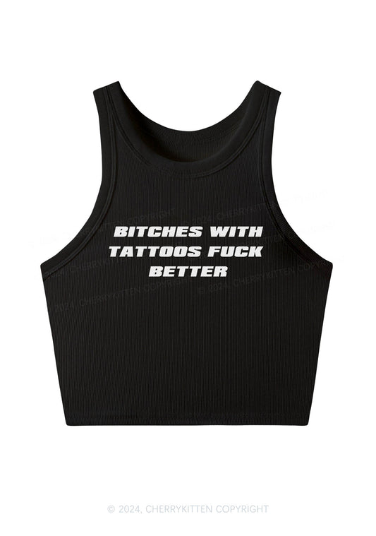Bxxches With Tattoos Fxxk Better Y2K Crop Tank Top Cherrykitten