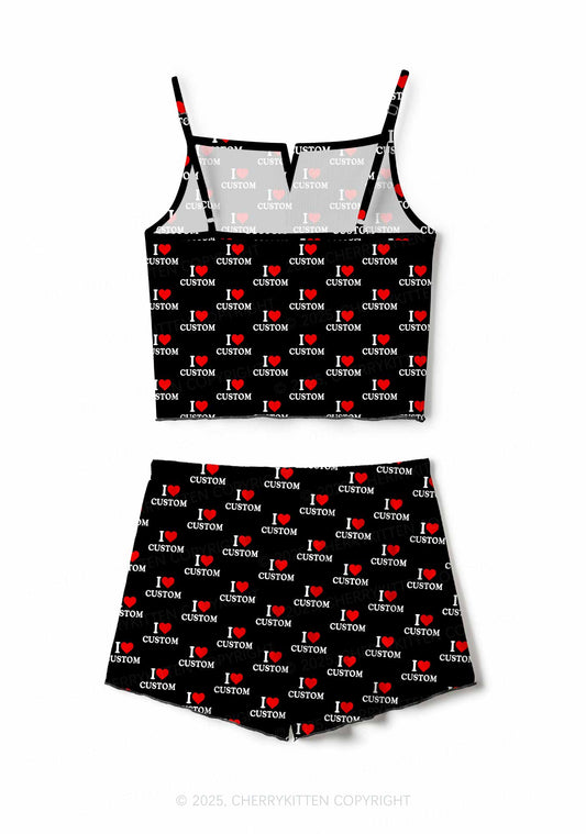 I Love Custom Valentine's Day Y2K Print Cami Shorts Pajama Set Cherrykitten