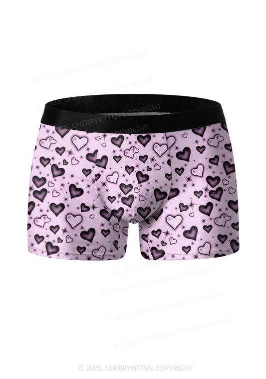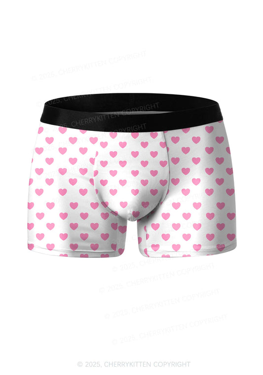 Plain Pink Heart Valentine's Day Y2K Print Couples Boxer Briefs Set Cherrykitten