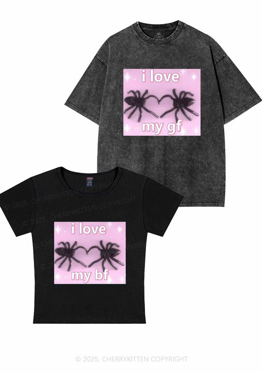 Love My Spider BF GF Y2K Valentine's Day Washed Tee Cherrykitten