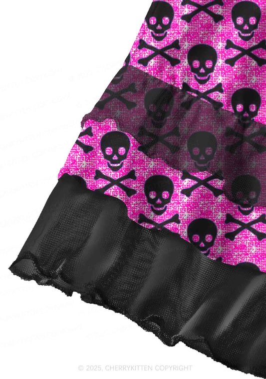 Skeleton Squad Valentine's Day Y2K Print Mini Layered Skirt Cherrykitten