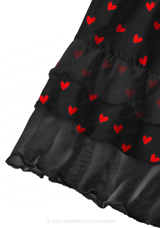 Black Heart On Red Valentine's Day Y2K Print Mini Layered Skirt Cherrykitten
