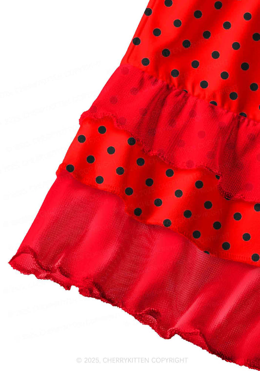 Black Dots On Red Valentine's Day Y2K Print Mini Layered Skirt Cherrykitten