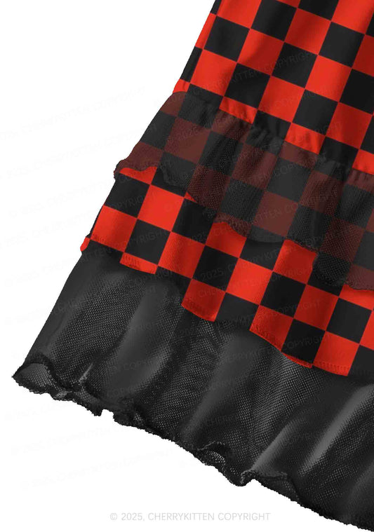 Black And Red Check Valentine's Day Y2K Print Mini Layered Skirt Cherrykitten