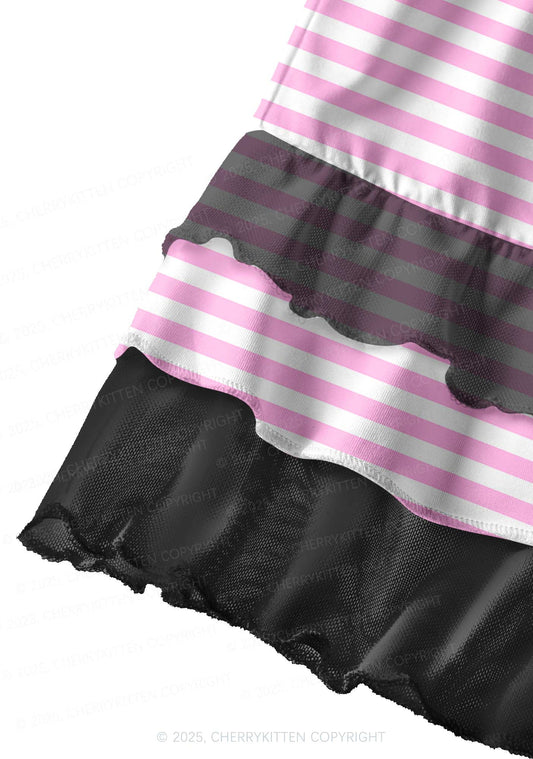 Pink And Black Stripe Valentine's Day Y2K Print Mini Layered Skirt Cherrykitten