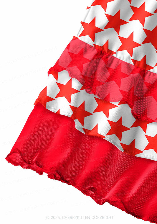White Stars On Red Valentine's Day Y2K Print Mini Layered Skirt Cherrykitten