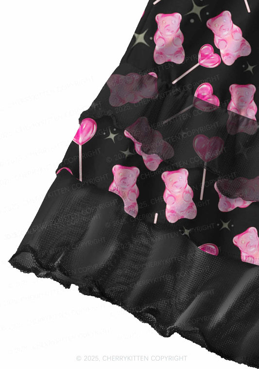 Lollipops Gummies Valentine's Day Y2K Print Mini Layered Skirt Cherrykitten