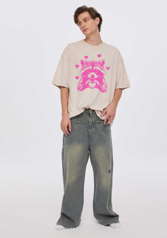 Pink Raccoon Heart Valentine's Day Y2K Shirts Washed Tee Cherrykitten