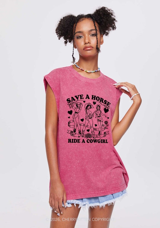 Ride A Cowgirl Valentine's Day Y2K Washed Muscle Tank Cherrykitten