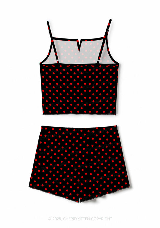 Red Dots On Black Valentine's Day Y2K Print Cami Shorts Pajama Set Cherrykitten
