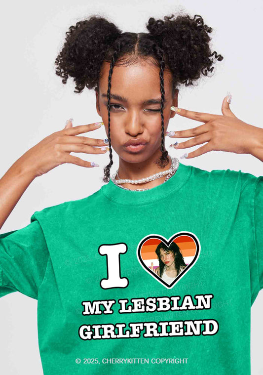 Custom My Lesbian GF Pride Y2K Valentine's Day Washed Tee Cherrykitten
