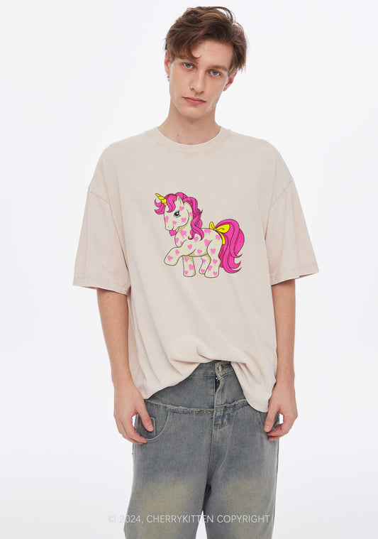 Pink Heart Unicorn Y2K Valentine's Day Washed Tee Cherrykitten