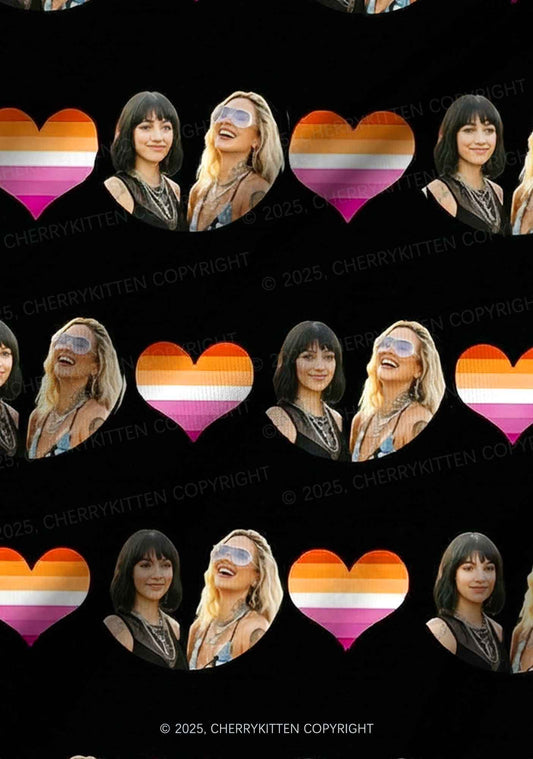 Custom Lesbian Couple Photo Valentine's Day Y2K Print Couples Thong Set Cherrykitten