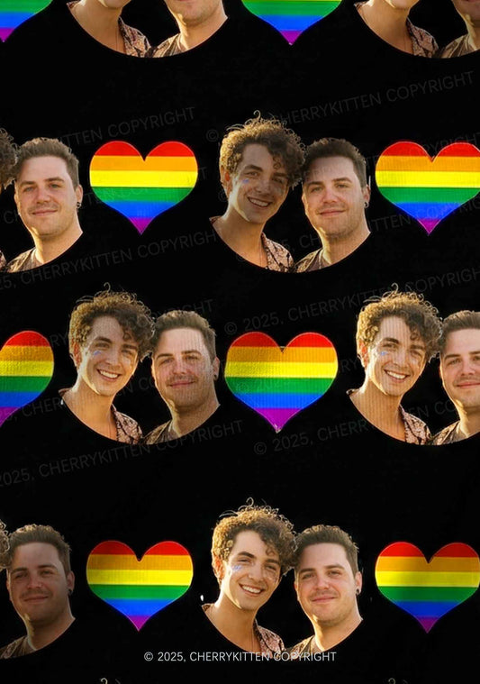 Custom Gay Couple Photo Valentine's Day Y2K Print Long Sleeve Pajama Set Cherrykitten