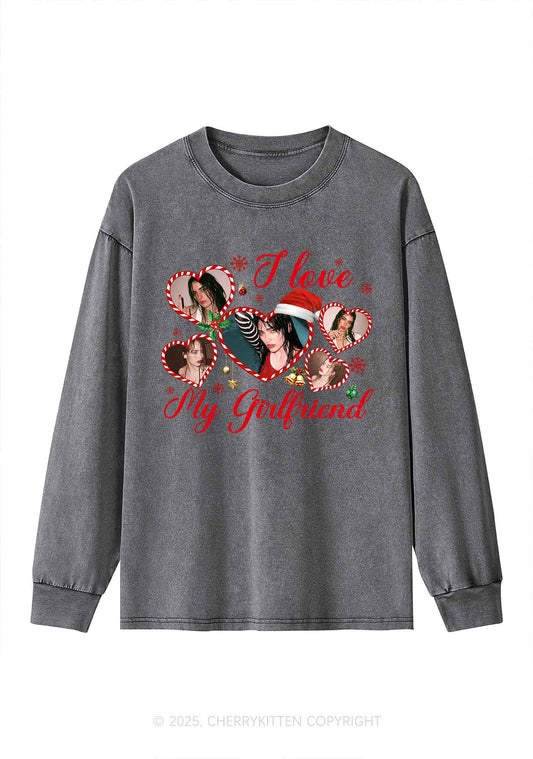 Custom Christmas I Love My GF Y2K Washed Long Sleeves Cherrykitten