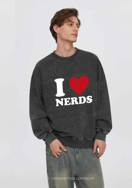 I Love Nerds Y2K Washed Sweatshirts Cherrykitten